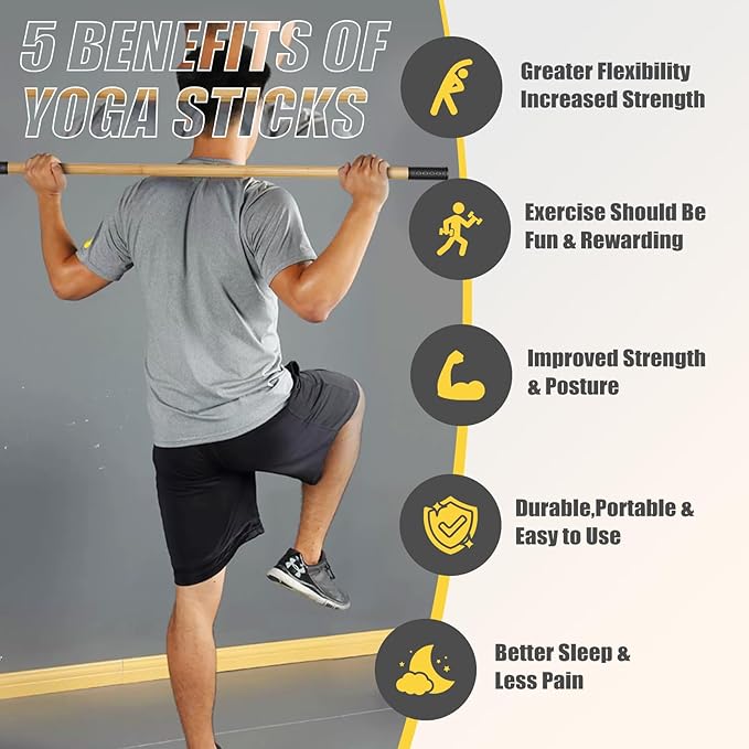 • Improve Thoracic Spine Flexibility & Balance - our brand gym stick can release stiff back, alleviate body pain, and improve physical health. Help you adjust your posture, improve breathing, stretching, and flexibility. Yoga sticks are also effective in learning yoga
