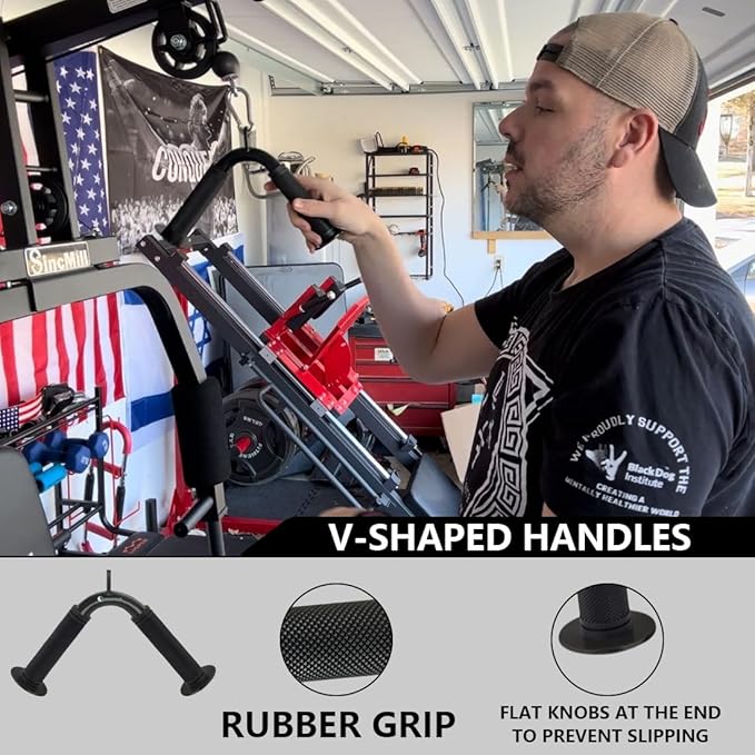 • V Shaped Bar +V Handle with Rotation + Straight Rotaing Bar - Constructed of high-quality steel with knurling rubber handle,Ideal for performing pull-downs,triceps press-downs, upright rows,straight bar curls, seated rows, plus more. 0.5 inch hole can fit easily for all cable system.