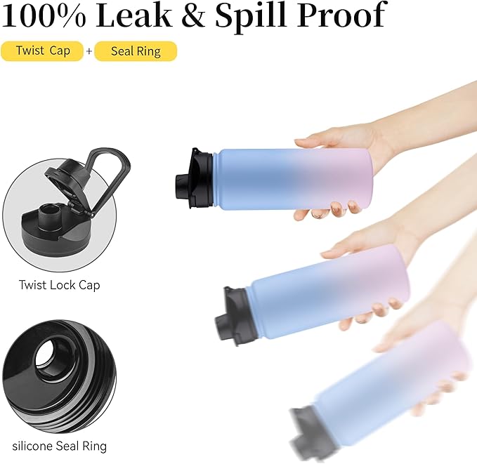 • 2 Lids: The stainless steel water bottles come with 2 leak proof handle lids (straw lid and wide mouth lid), safe and easy to carry