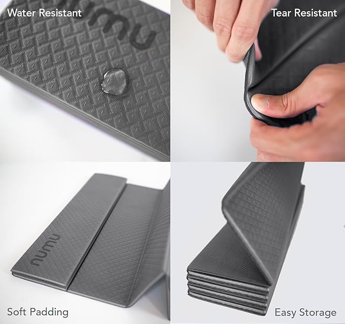 Numu Foldable Yoga Mat with Yoga Carrying Strap - Nonslip, Lightweight, and Portable 1/4” Inch Thick Workout Exercise Mat - Perfect for Easy Storage and Travel