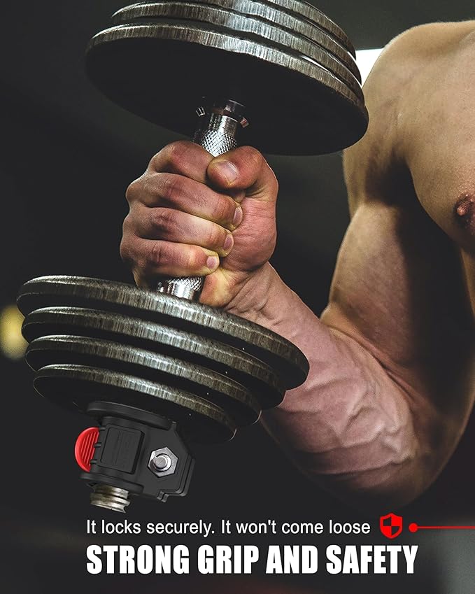 • ✔STRONG GRIP:Weight bar clips are specially designed for weightlifting and designed to provide an extra secure grip.Use these weight clips to hold your weights in place(Weight: 400+lbs)so they don't go rolling around while you're lifting. The proof of strength, even if you hold the dumbbell vertically(Weight: 60lbs), you can keep the weight! These weightlifting clips are perfect for dumbbell rows,benching, squatting etc.