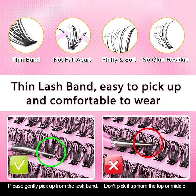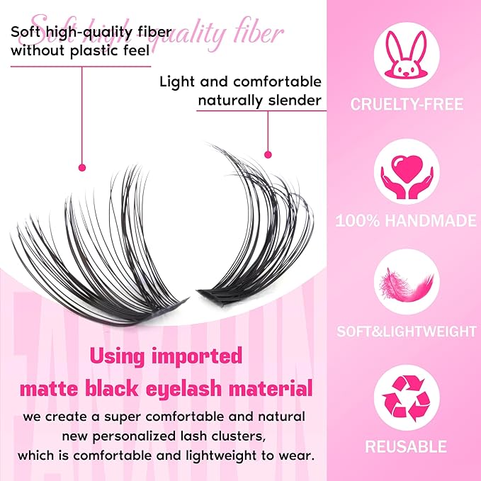 • High quality: The cluster eyelashes are made of korean imported materials, super soft and lightweight; Our eye lash clusters maintain the perfect d-curvature; Long hold time, sweatproof; It looks real and natural, and is soft and comfortable to wear, ensuring no burden
