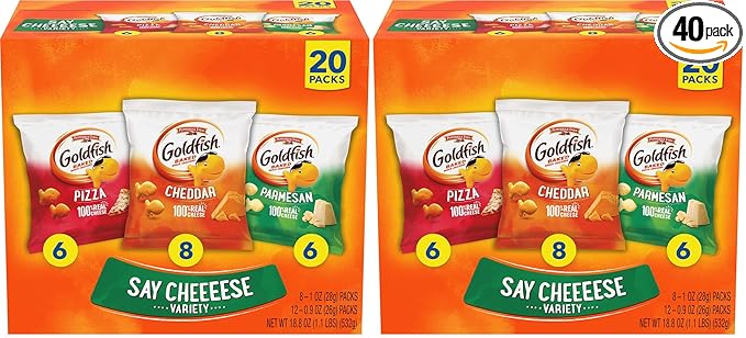 Goldfish Crackers Say Cheeeese Variety Pack with Cheddar, Pizza and Parmesan, Snack Packs, 20 Ct (Pack of 2)