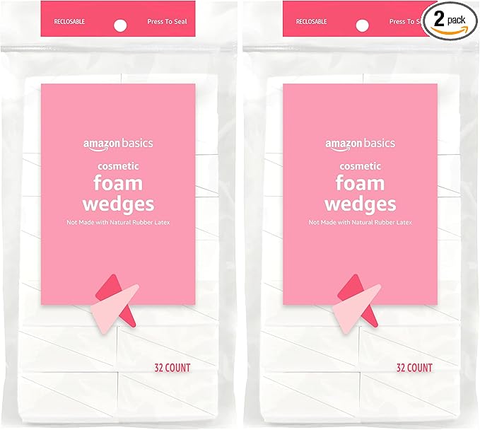 Amazon Basics Cosmetic Rectangular Foam Wedges For Makeup, 32 Count, White (Pack of 2)