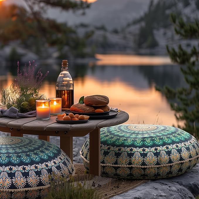 Codi Meditation Floor Pillow, Round Large Pillows Seating for Adults, Bohemian Mandala Circle Cushion for Outdoor Fireplace Yoga Living Room, 32 Inch, Memory Foam Added, Green