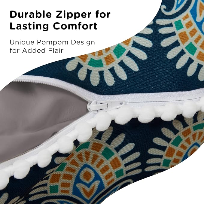 • BRIGHT UP YOUR HOME: Pick from our distinct color palette to brighten up your home decor. The round boho case is a gorgeous piece of mandala art, made with sensitive-safe fabric featuring cute white pom pom trim. Kids, Adults, even pets will love it. Machine washable cover to free your hands.