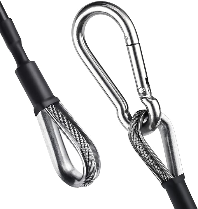 • 【Sturdy & Reliable Material】-- Our fitness extension cable for gym is made of stainless steel and PU, which is wear resistant and firm, durable and long service life. The connection between the steel wire and the PU sleeve has a nylon protective cover, ensure that the PU sleeve is firmly attached to the steel wire.