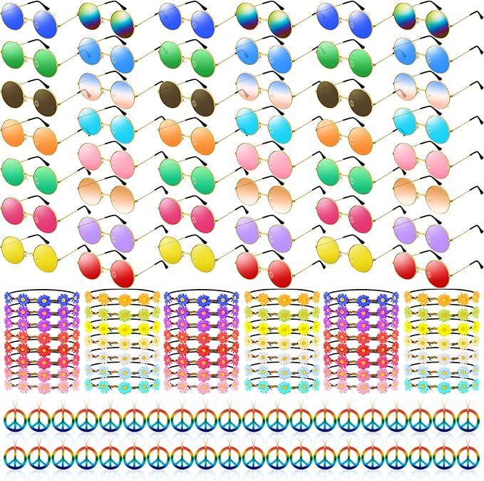 • Multiple colors to suit your outfit: the flower headband have15 colors, including off-white, pink, purple, orange, rose red, green, navy blue, light pink, light orange, white, red, blue , light purple, teal, light yellow; hippie sunglasses have 15 colors, including rainbow color, blue and pink two-color, gradient orange, blue, yellow, purple, bright red, tan, green, pink, lake blue, Orange, cyan, pink, dark blue(please refer to the picture for detailed colors)