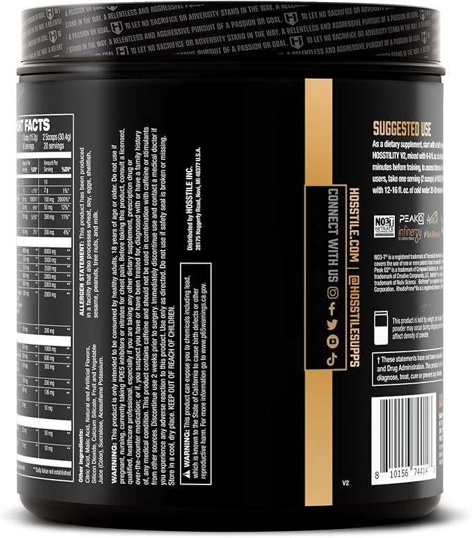 • Proudly Manufactured in the U.S.A.: Hosstility V2 Pre-Workout is manufactured in the United States in a GMP-compliant facility to ensure quality, safety, and consistency. This formula contains premium ingredients sourced from both domestic and international origins, delivering a transparent, high-quality product trusted by serious athletes.