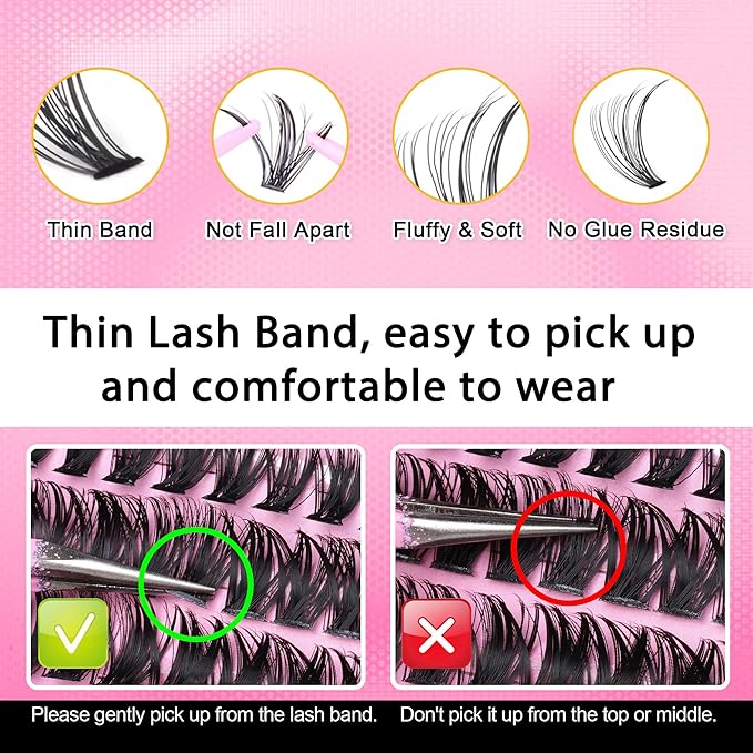 • The cluster eyelashes are made of korean imported materials, super soft and lightweight; Long hold time, sweatproof ; It looks real and natural, and is soft and comfortable to wear, ensuring no burden