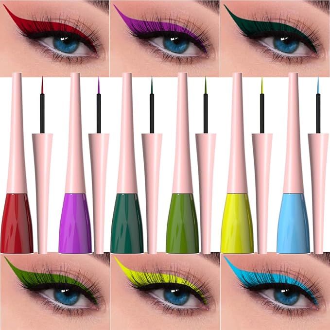 evpct 6Pcs Dark Red Purple Dark Green Light Green Sky Blue Liquid Eyeliner Set Waterproof Eye Liners for Women, Eyes Wing Colored delineador de ojos a prueba de agua contra el agua blanco para ojos