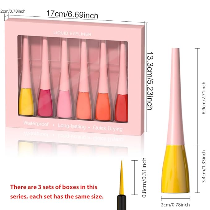 evpct 6Pcs Yellow Red Pink Tomato OrangeRed Brown Liquid Eyeliner Set Waterproof Eye Liners for Women, Eyes Wing Colored Eyeliner delineador de ojos a prueba de agua contra el agua blanco para ojos