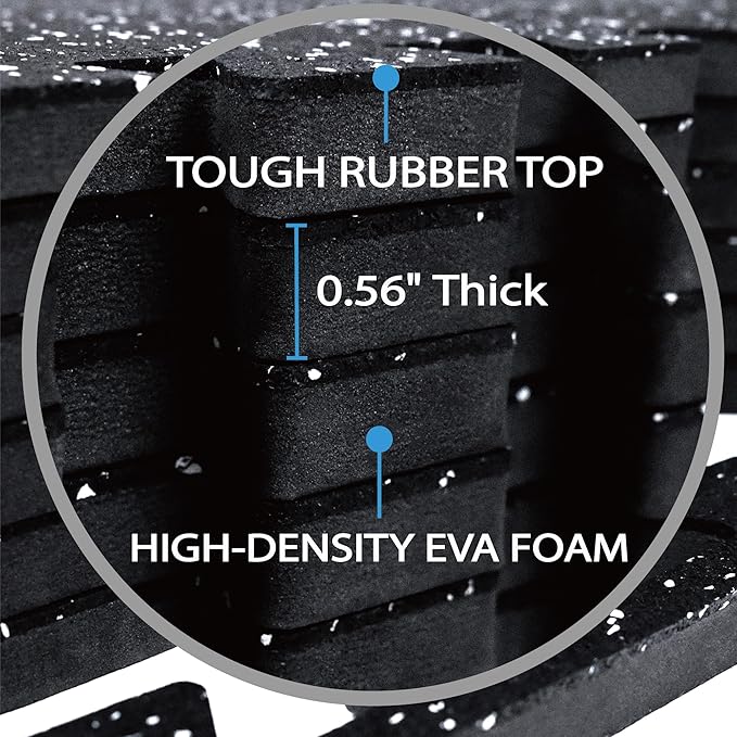 • Comfort and Support: The soft and resilient EVA foam layer ensures a comfortable exercising experience by effectively absorbing impact during workouts. It protects joints and floors from damage while minimizing noise.