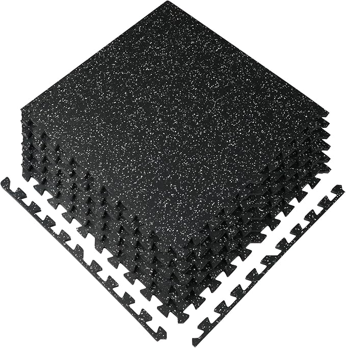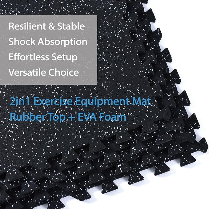 0.56 Inch Thick 24 Sq Ft Gym Flooring for Home Gym, 6 Tiles Robust Rubber Top with Eva Foam Exercise Equipment Mats, Protective Flooring Puzzle Mat for Fitness Room