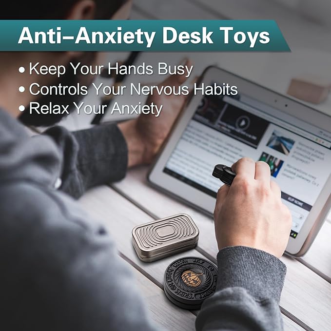 • Quality Craftsmanship: Each fidget toy in this set is meticulously crafted from high-quality steel to ensure durability and long-lasting enjoyment. Our fidget spinner boasts smooth spins for endless entertainment, while the fidget slider offers satisfying clicks and slides. The Haptic Coin provides a unique tactile experience that's both soothing and engaging