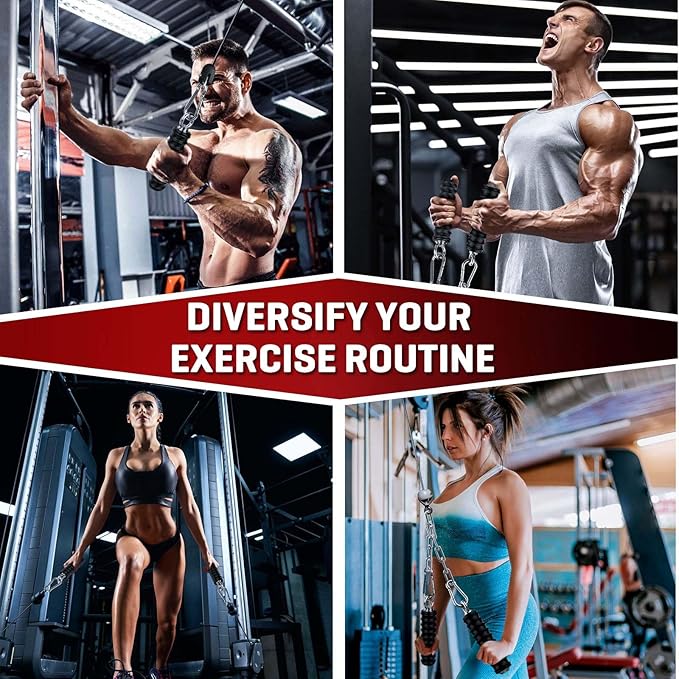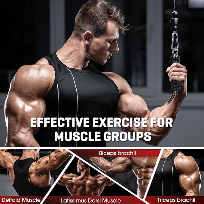 • Humanized Design: The cable machine handle design conforms to hand grip habits, threaded and anti-slip particles provide friction and a comfortable grip, preventing sweaty hands from slipping and increasing stability