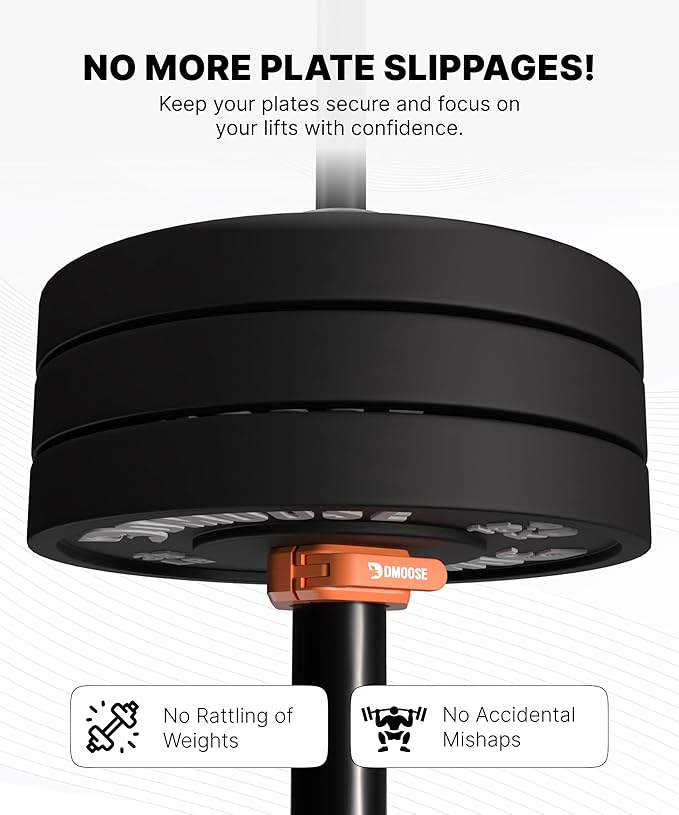 • SECURE HOLD FOR RELIABLE PERFORMANCE: The advanced locking mechanism of weight bar clamps guarantees a rock-solid hold ensuring that plates stay firmly in place and won’t shift or slip during lifts. Train with confidence knowing your weights are securely locked in place.