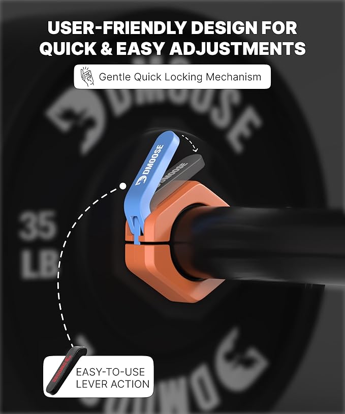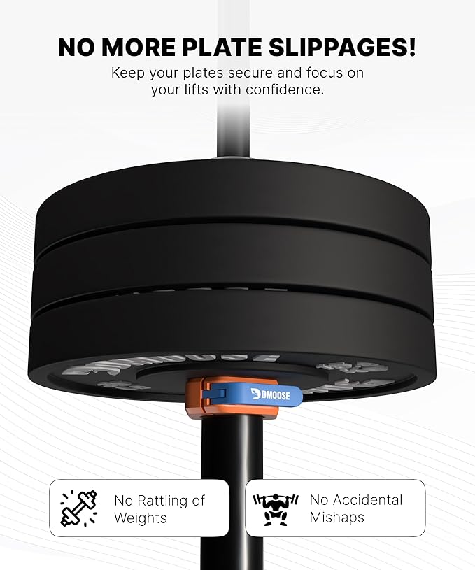 • SECURE HOLD FOR RELIABLE PERFORMANCE: The advanced locking mechanism of weight bar clamps guarantees a rock-solid hold ensuring that plates stay firmly in place and won’t shift or slip during lifts. Train with confidence knowing your weights are securely locked in place.