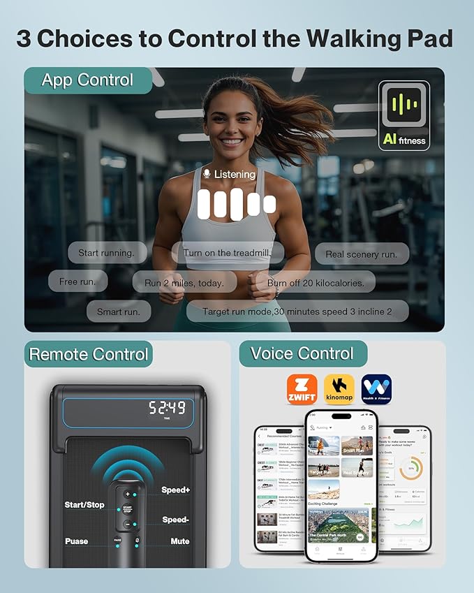 • Smart APP: The smart walking pad treadmill with KINOMAP WELLFIT APP offers a powerful fitness data tracking function for a personalised exercise. Intergrated with preset programs, fitness training video, customized workout plan and dynamic data analysis, having been a game-changer for work-from-home routine and becoming an indispensable tool for maintaining a healthy work-life balance from the comfort of home. No subscription fee!