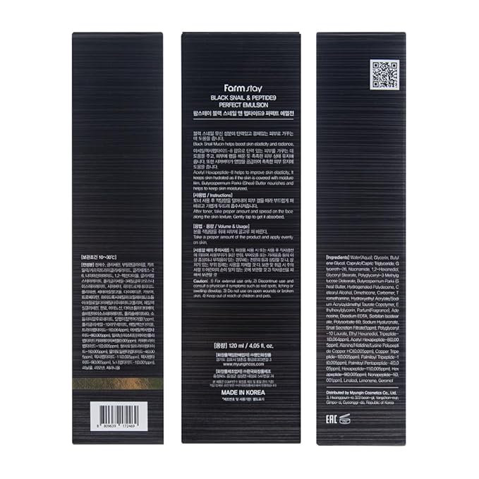 FARMSTAY Black Snail & Peptide 9 Perfect Emulsion, Snail Mucin Moisturizer for Elastic & Glow, Hydrating & Soften, Anti-aging, Barrier Repair, for Women & Men, Korean Skin Care, 4.05 fl.oz