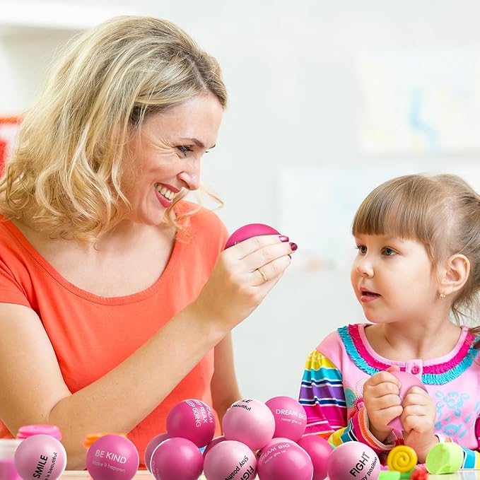 Liliful 48 Pieces Motivational Stress Balls Bulk for Adults Fidget Toys End of The Year Gifts Inspirational Squeeze Balls Employee Appreciation Gift Adult Goodie Bag 2. 2 Inch(Pink)