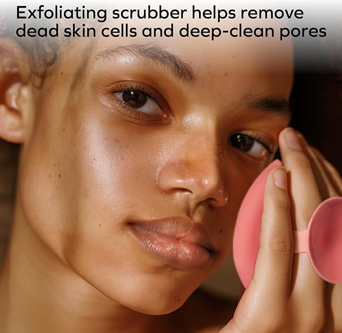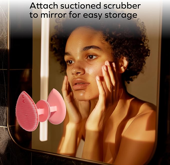 • Exfoliating Silicone Bristles: Deep clean and rejuvenate your skin with the silicone exfoliating brush. The brush is constructed from high-quality silicone bristles that feature a suction cup on the back of the product, great for sticking to your shower wall or bathroom mirror. The back is also equipped with a ring cutout, great for adding grip and stability while you exfoliate.