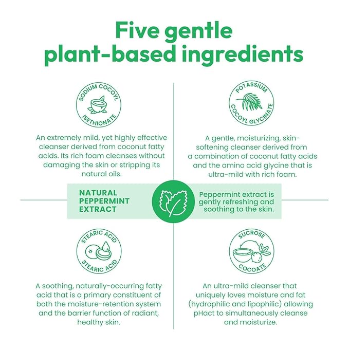 • pHact is a unique soap-free, moisture-rich, natural skin pH cleansing bar. Its rich lather provides a gentle, yet highly effective cleansing experience that will not dry or irritate the skin. pHact is made with only five plant-based ingredients and it is uniquely dermatologist, pediatrician, ophthalmologist and gynecologist tested. pHact Hint of Mint is infused with natural peppermint extract, leaving your skin feeling gently refreshed with every wash.