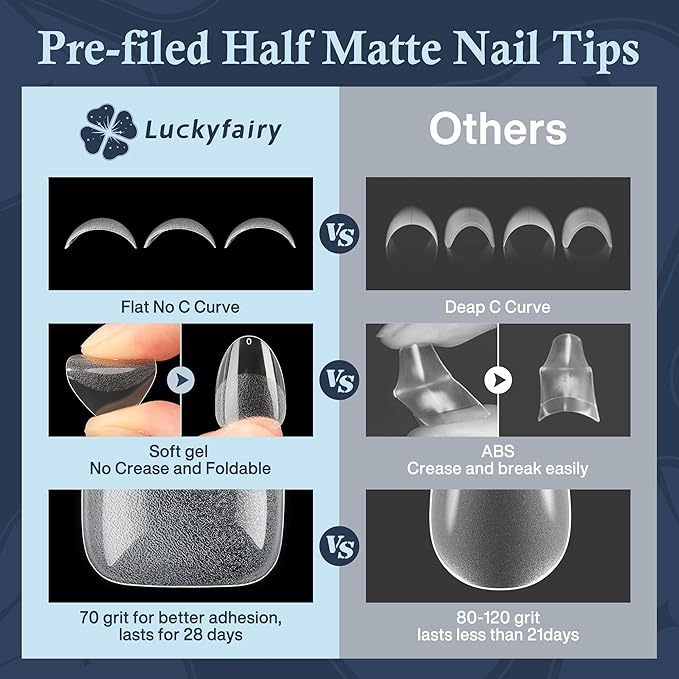 • ❤️ Wide Application: Luckyfairy Soft Gel Tips can be used for gel nail polish, acrylic nails, dip powder nails, poly nail extension gel, nail decorations, etc. Suitable for both DIY at home and professional nail salons.