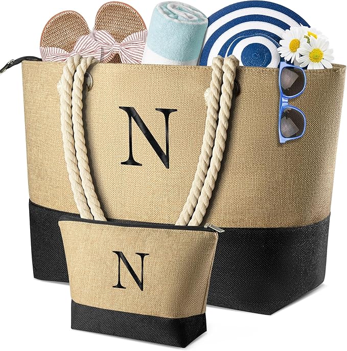 • Personalized Beach Set for Stylish Getaways: Stand out with this personalized initial jute beach tote and matching cosmetic bag set. Perfect for beach days, poolside lounging, and tropical vacations. Choose your initial to add a custom touch to your beach essentials.