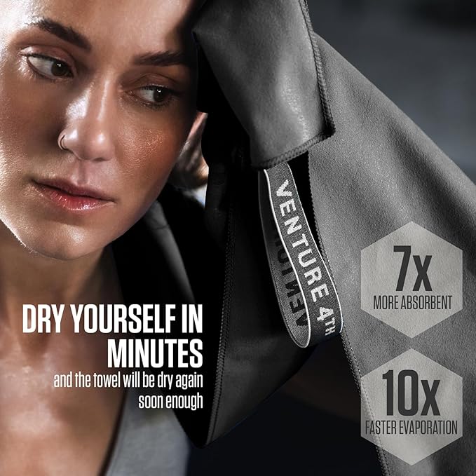 VENTURE 4TH Quick Dry Towel. Microfiber Travel Towel Ideal for Camping, Hiking, Backpacking, Gym. Lightweight & Fast Drying Travel Towels for Body. Compact & Easy to Pack - Charcoal Large
