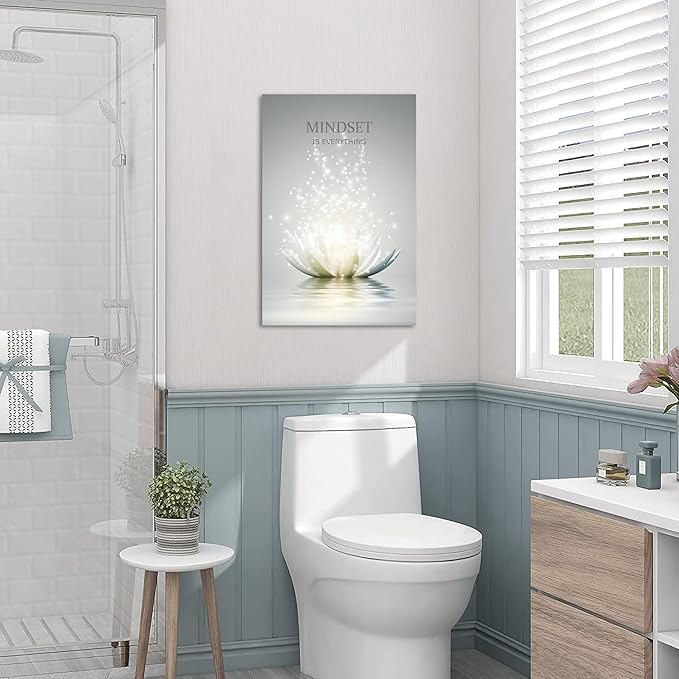 Lotus Flower Wall Art Canvas Mindset Motivational Quotes Poster for Zen Office Wall Decor Spiritual Meditation Prints Artwork Framed (12 x 16inches)