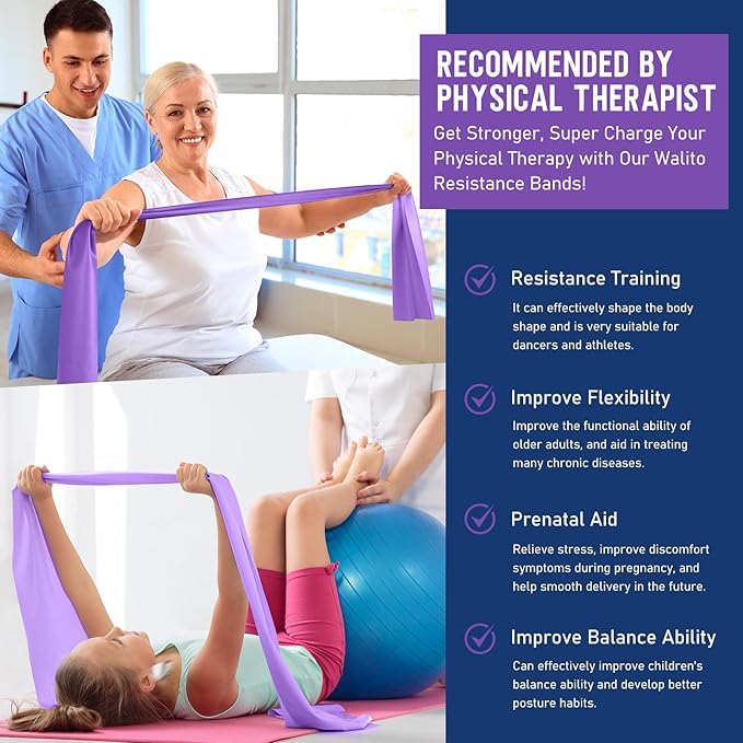 WALITO Resistance Bands for Working Out, Exercise Bands for Women and Men, Workout Bands for Physical Therapy, Stretch, Recovery, Pilates, Rehab, Strength Training and Home Gym