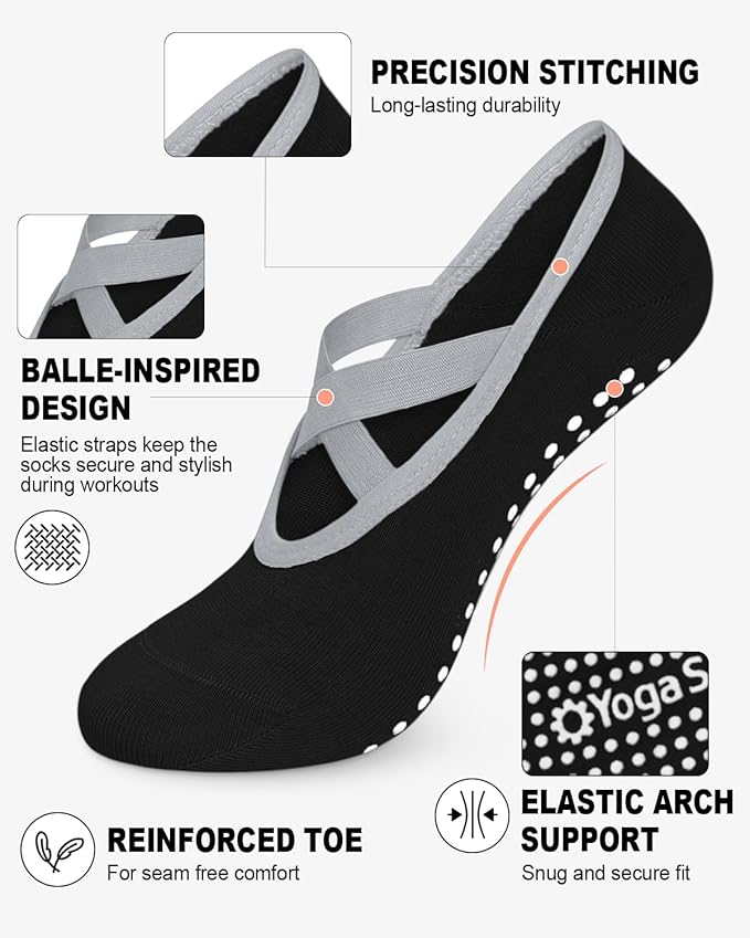 • 🆕SECURE GRIP -- Showcasing non-slip dots on the socks' soles for enhanced grip. Our grippy socks provide optimal traction, stability, and comfort that ensures your feet stay securely in place on the mat or equipment. Say goodbye to slipping and sliding – maintain your secure foundation.