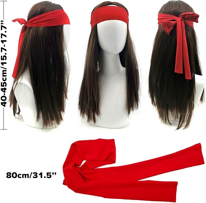 • Classic 80s 70s Hippy Fancy Dress: 1Hippie Brown Wig, 1 Necklace with Peace Pendant, 1 Sunglasses and 1 red cloth, wear your hippie style.Fits most adults.