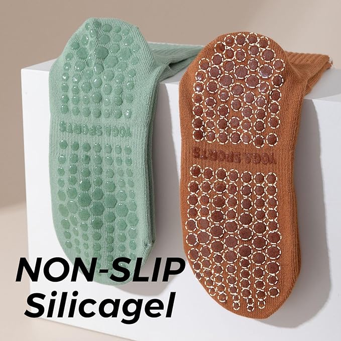 • 【NON SKID SOLES】:The small PVC particles on the bottom of women's grip socks largely increase factions between feet, socks and the floor. The trampoline grip socks are designed for falling prevention, with grippers covering heel to toe.Our grip socks provide optimal traction, stability and comfort to ensure your feet stay secure on mats or equipment. Say goodbye to slipping and sliding - keep your foundation safe. Fitness and workouts are equally secure with grip socks.