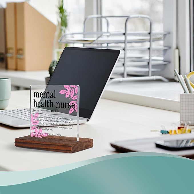 • Stylish Acrylic Sign: Made from high-quality acrylic and mounted on a sturdy wooden base, this desk sign is both stylish and resilient. It ensures a lasting token of appreciation and recognition for the dedication of mental health nurses. This sign is not only a tribute to mental health nurses but also a highlight in office or home decor, constantly reminding of their vital role and contributions.