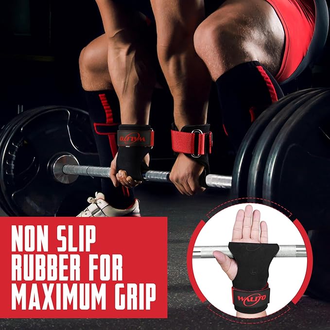 WALITO Weight Lifting Wrist Straps (Pair),Double Layer Leather Grips for Deadlift,Powerlifting and Gym Workouts, Adjustable Neoprene Padded Wrist Wraps - Men/Women, Heavy Duty Support