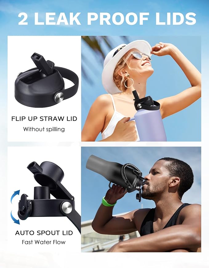 • INSULATED TUMBLER PACKAGE INCLUDE: 40 oz insulated water bottle with handle, and 8 bottle accessories (1 x auto spout lid, 1 x straw lid, 1 x bottle carrier bag with strap, 1 x paracord handle, 1 x protective boot, 2 x straws, 1 x straw brush), make this insulated cup your best travel companion
