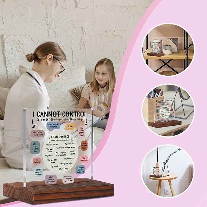 • Therapist Office Decor Plaque: Not only does this sign enhance the decor of a therapist's office, but it also serves as a practical reminder for both therapists and clients to focus on controllable aspects of their lives, promoting better mental health outcomes.