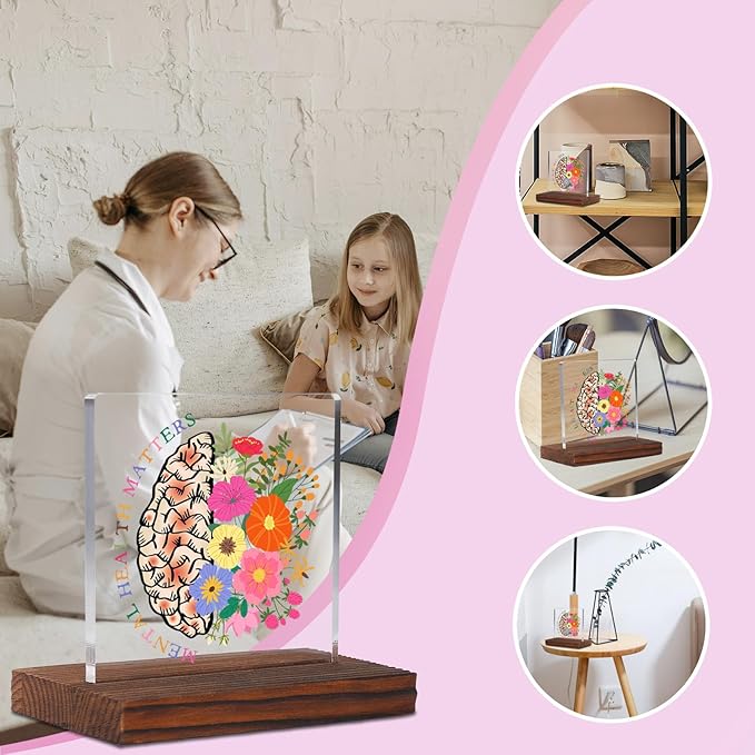 • Robust Construction: Made with high-quality acrylic and a wooden base, the sign's robust build ensures it stands as a long-lasting addition to any professional setting, continually reminding of the vital role of mental health care.