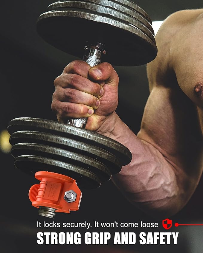 • ✔STRONG GRIP:Weight bar clips are specially designed for weightlifting and designed to provide an extra secure grip.Use these weight clips to hold your weights in place(Weight: 400+lbs)so they don't go rolling around while you're lifting. The proof of strength, even if you hold the dumbbell vertically(Weight: 60lbs), you can keep the weight! These weightlifting clips are perfect for dumbbell rows,benching, squatting etc.