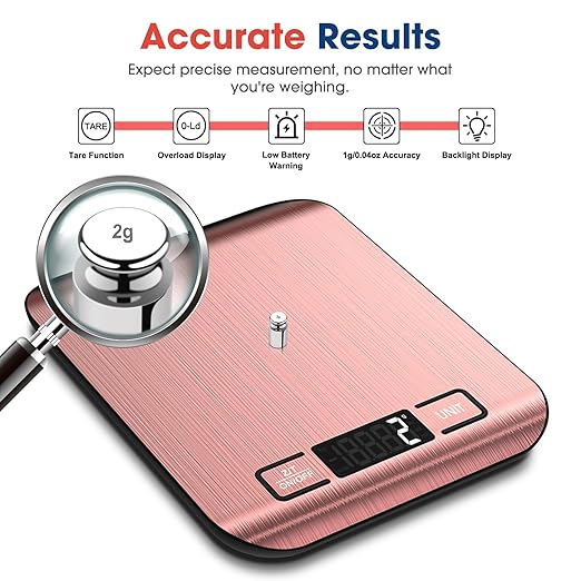 • 【Reliable Accuracy】- Accurately weigh items up to 10 kg/22 lb with 1 g increments. Great for cooking baking and weight loss. (Batteries Included)