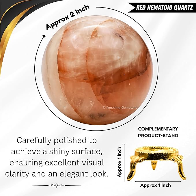 Amazing Gemstone Red Hematoid Quartz Crystal Ball with Stand - 2 Inches Crystal Sphere Meditation Balls for Witchcraft and Decorative Balls