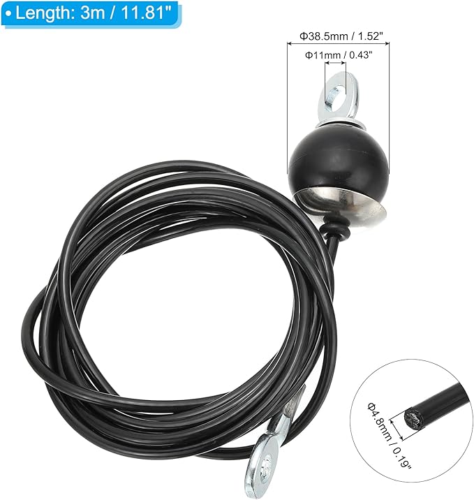 • Material: PU, Steel Wire; Length: 3 m / 11.81inch; Width: 38.5 mm / 1.52inch; Wire Diameter: 4.8mm / 0.02inch; Hole Diameter: 11mm / 0.04inch; Packing List: 1Pcs x Fitness Pulley Cable