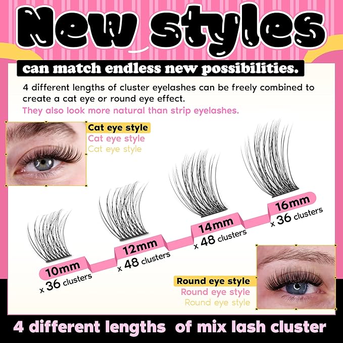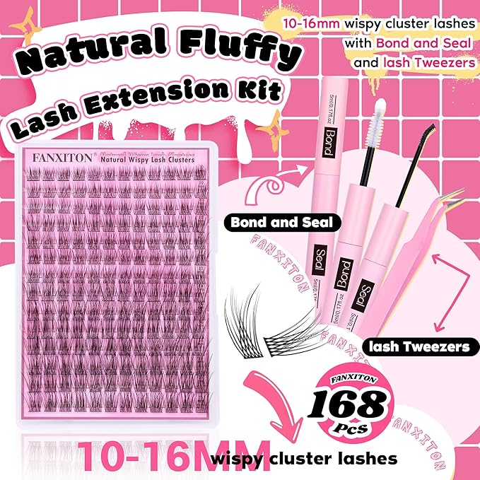 • This cost-effective diy lash extension kit includes all the accessories needed to wear an eyelash clusters, including 168 pcs cluster lashes, 4 different lengths of natural wispy lash cluster, an lash bond and seal, and an eyelash tweezers
