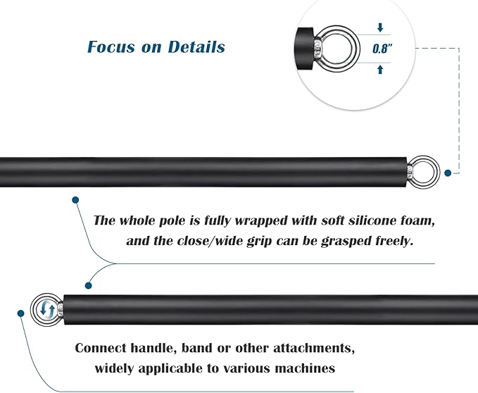 • [Multi-functional Lat Bar] - Attached to cable machine, or with resistance bands can help you do various exercises, such as weightlifting training, squats, and so on. Improve biceps, triceps, shoulders and back, etc, keep your body in good shape.