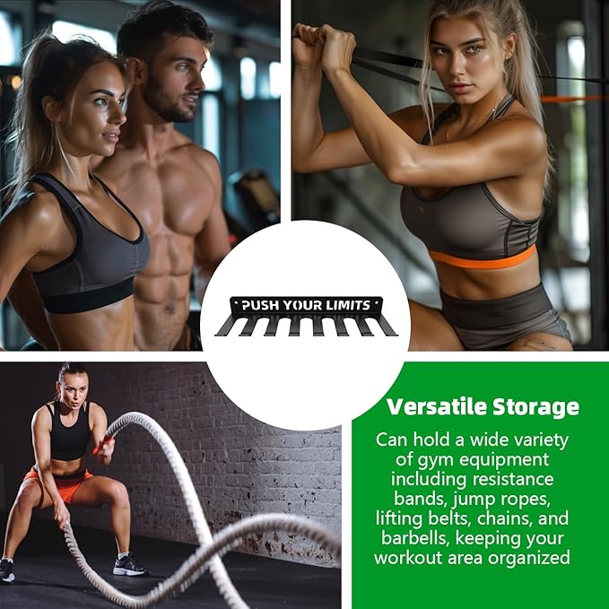 • Versatile and Functional: This fitness accessories storage rack can support up to 50 lbs per hook. It secures your gear with an angled lip for safety. You can easily hang your lifting belts, chains, curl bar, and resistance bands. The multi-purpose nature of our storage rack makes it ideal for various fitness settings. Whether you are a professional trainer, a fitness enthusiast, or just starting your fitness journey, this rack provides a convenient storage solution for different types of equipm