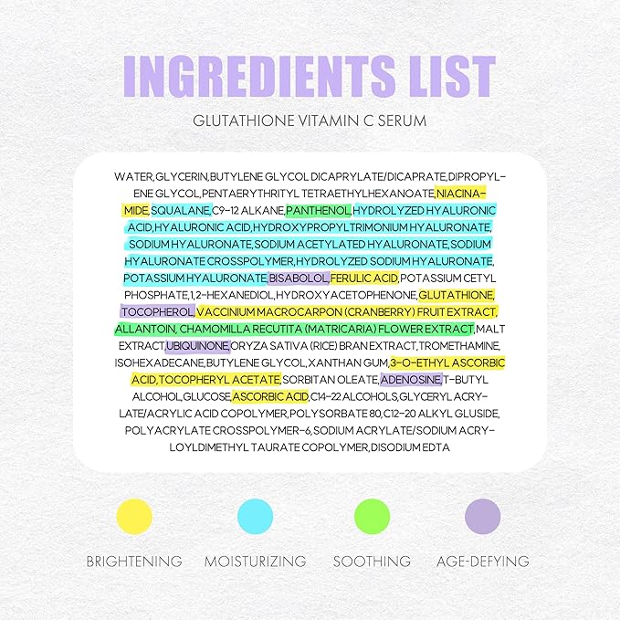 • [PERFECT FOR all skin type , especially sensitive or acne-prone skin type] Smilebloom’s Glutathione Vitamin C Serum is crafted to meet clean beauty standards — with no artificial fragrance, silicones, parabens, or mineral oils. Gentle and cruelty-free, it’s ideal for daily use and for those looking to brighten and even out skin tone.