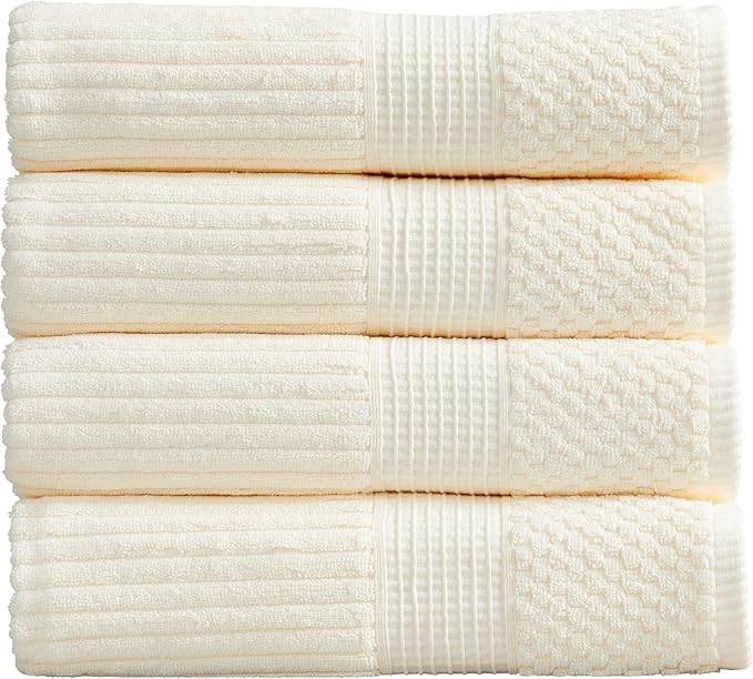 Springtree Home 100% Cotton Bath Towel Set of 4 | Super Soft & Absorbent with Quick-Dry Fibers | 4 Bath Towels | Textured and Durable Cotton | Krista Collection (Cream)