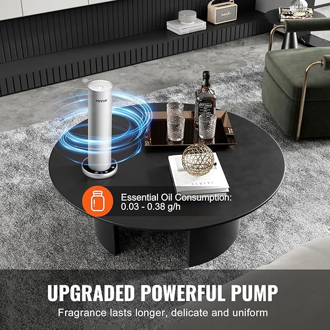 • Enhanced Turbo Pump Technology: Our upgraded power pump and cold air diffusion tech swiftly convert essential oils into nanoparticles, ensuring rapid and effective scenting. Enjoy continuous aromatic bliss with low essential oil consumption ranging from 0.03-0.38 g/h.